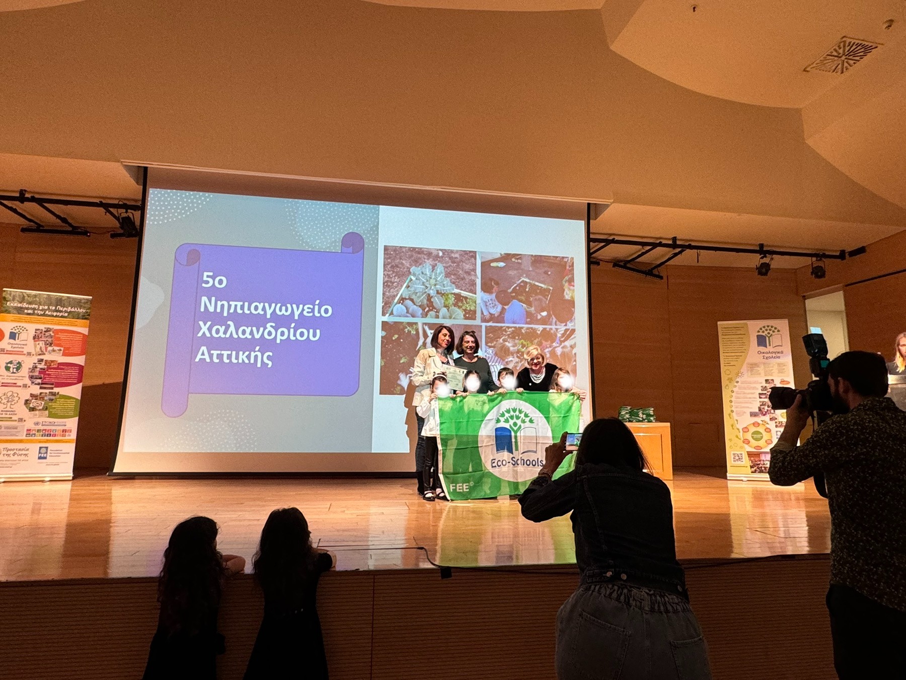 Τα παιδιά και οι εκπαιδευτικοί του 5ου Νηπιαγωγείου βραβεύτηκαν από το Διεθνές Θεματικό Δίκτυο Περιβαλλοντικής Εκπαίδευσης «Οικολογικά σχολεία» για τις δράσεις του σχολείου, για την πολύ ωραία ιδέα της διαμόρφωση της σχολικής αυλής σε βιώσιμο κήπο.