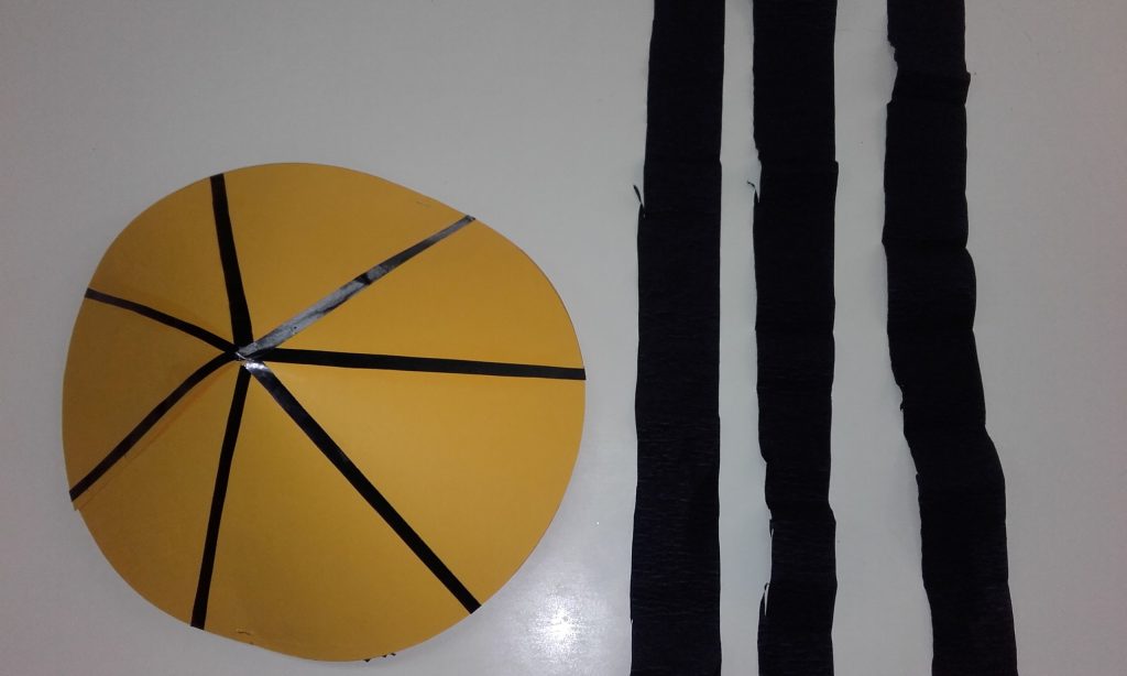 ► Τσακίζουμε στη μέση το πιάτο και κόβουμε με το ψαλίδι μας στο κέντρο και ξανακόβουμε στη μέση στα δύο τρίγωνα που σχηματίζονται.
