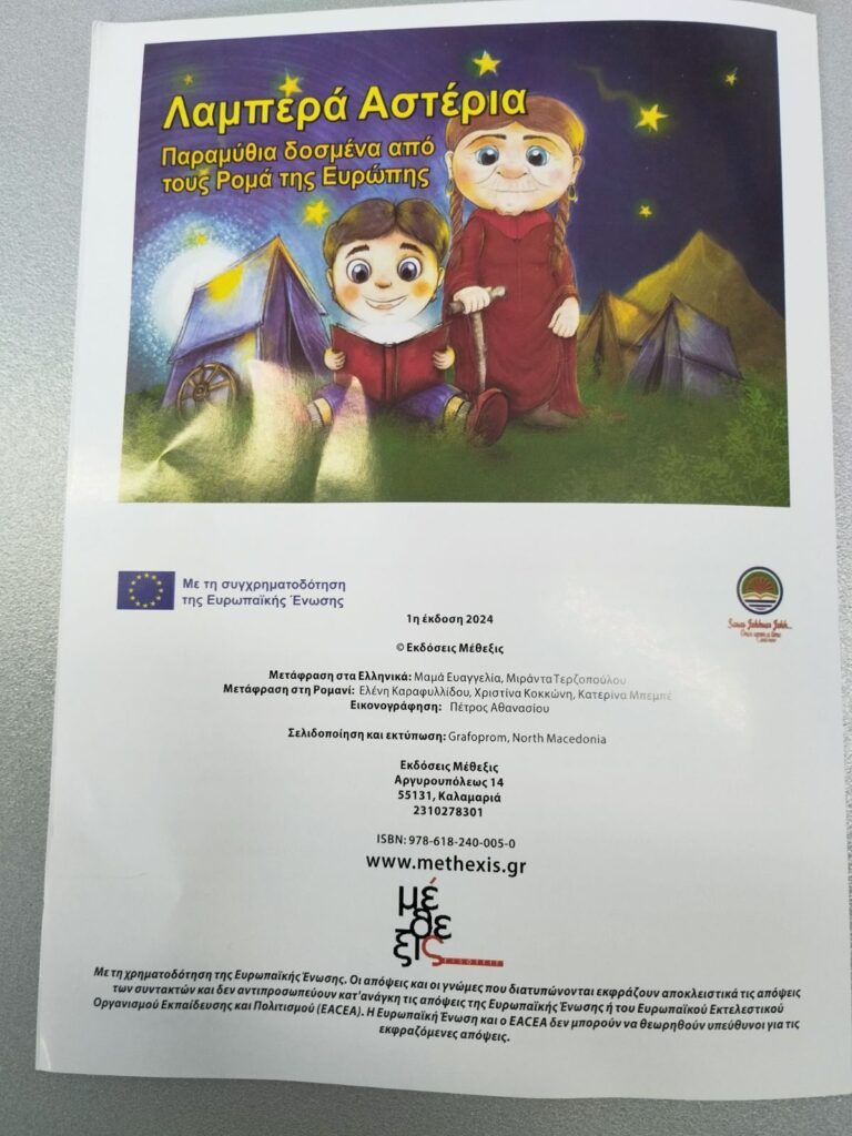 Σε συνέχεια της παρουσίασης του βιβλίου με τα τσιγγάνικα παραμύθια με τίτλο «Λαμπερά Αστέρια», που έγινε στον Δήμο Χαλανδρίου στις 27/02/2025 από την « Ένωση Ελλήνων Ρομά Διαμεσολαβητών και Συνεργατών», σε στελέχη της Κοινωνικής Υπηρεσίας του Δήμου Χαλανδρίου, η ομάδα εκπαίδευσης και στελέχη του Παραρτήματος Ρομά ενημέρωσαν στις 20/03/2025 για το πρόγραμμα και παρέδωσαν αντίτυπα του βιβλίου στον Διευθυντή του Δημοτικού Σχολείου κ. Βλαχόπουλο και στην Προϊσταμένη του 4ου Νηπιαγωγείου κ. Αναγνώστου .