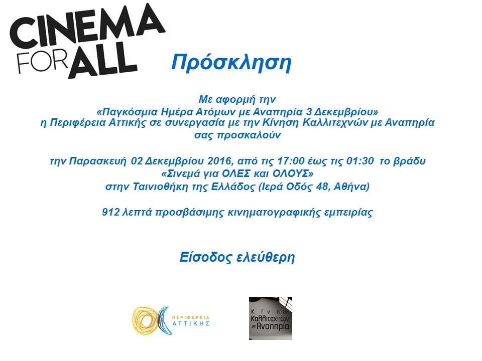 ΗΠεριφέρεια Αττικής σε συνεργασία με την Κίνηση Καλλιτεχνών με Αναπηρία παρουσιάζει: