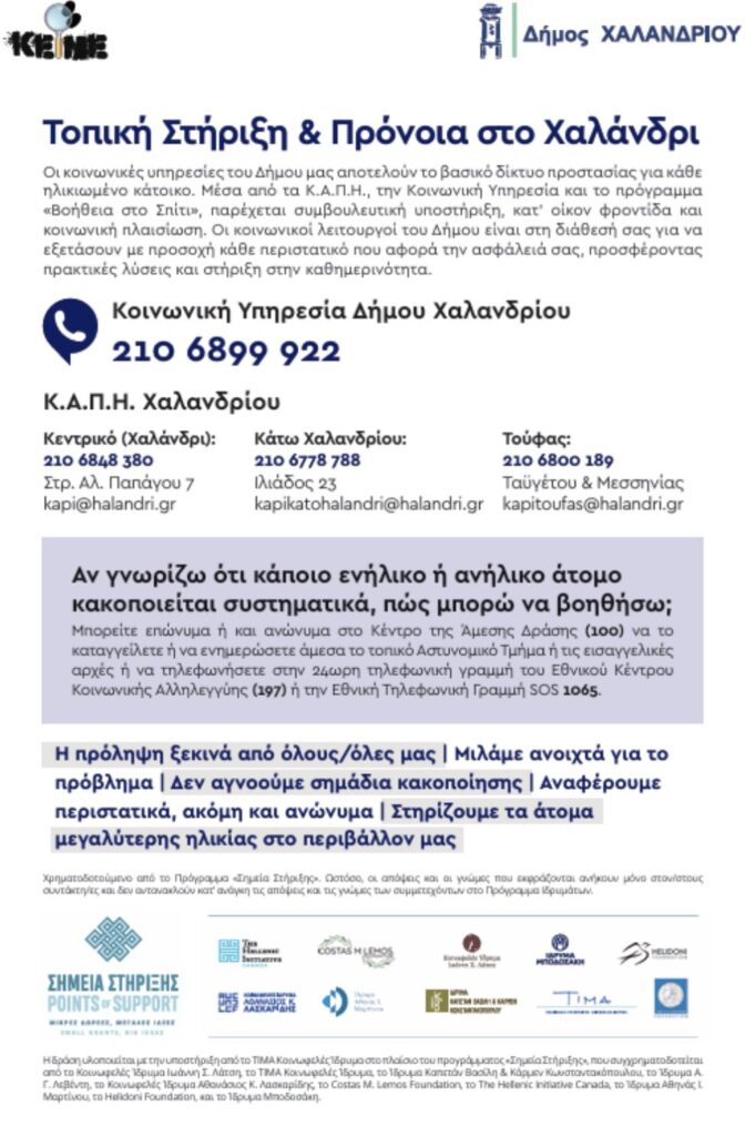 Με μεγάλη επιτυχία ολοκληρώθηκαν οι Κύκλοι Πρόληψης της Κακοποίησης και Ενδυνάμωσης για άτομα Τρίτης Ηλικίας στα τρία ΚΑΠΗ του Δήμου Χαλανδρίου.