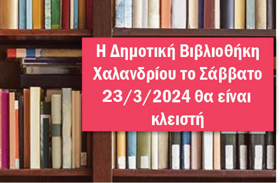 Δημοτική Βιβλιοθήκη Χαλανδρίου – Θα είναι κλειστή το Σάββατο 23/3/2024