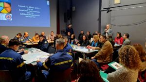 Στην Άσκηση Επί Χάρτου (Α.Ε.Χ.) με την κωδική ονομασία «ΚΛΕΙΩ 2025», συμμετείχαν εκπρόσωποι του υπουργείου Κλιματικής Κρίσης και Πολιτικής προστασίας, η αντιπεριφερειάρχης Β. Τομέα Λουκία Κεφαλογιάννη επικεφαλής αντιπροσωπείας της Περιφέρειας Αττικής, οι επικεφαλής των πυροσβεστικών σταθμών που εδρεύουν στο Χαλάνδρι, εκπρόσωποι της ΕΛΑΣ, της ΕΥΔΑΠ, του ΔΕΔΔΗΕ, εργαζόμενοι του Δήμου, διευθυντές σχολείων του Χαλανδρίου, όπως και εκπρόσωποι εθελοντικών ομάδων της πόλης.