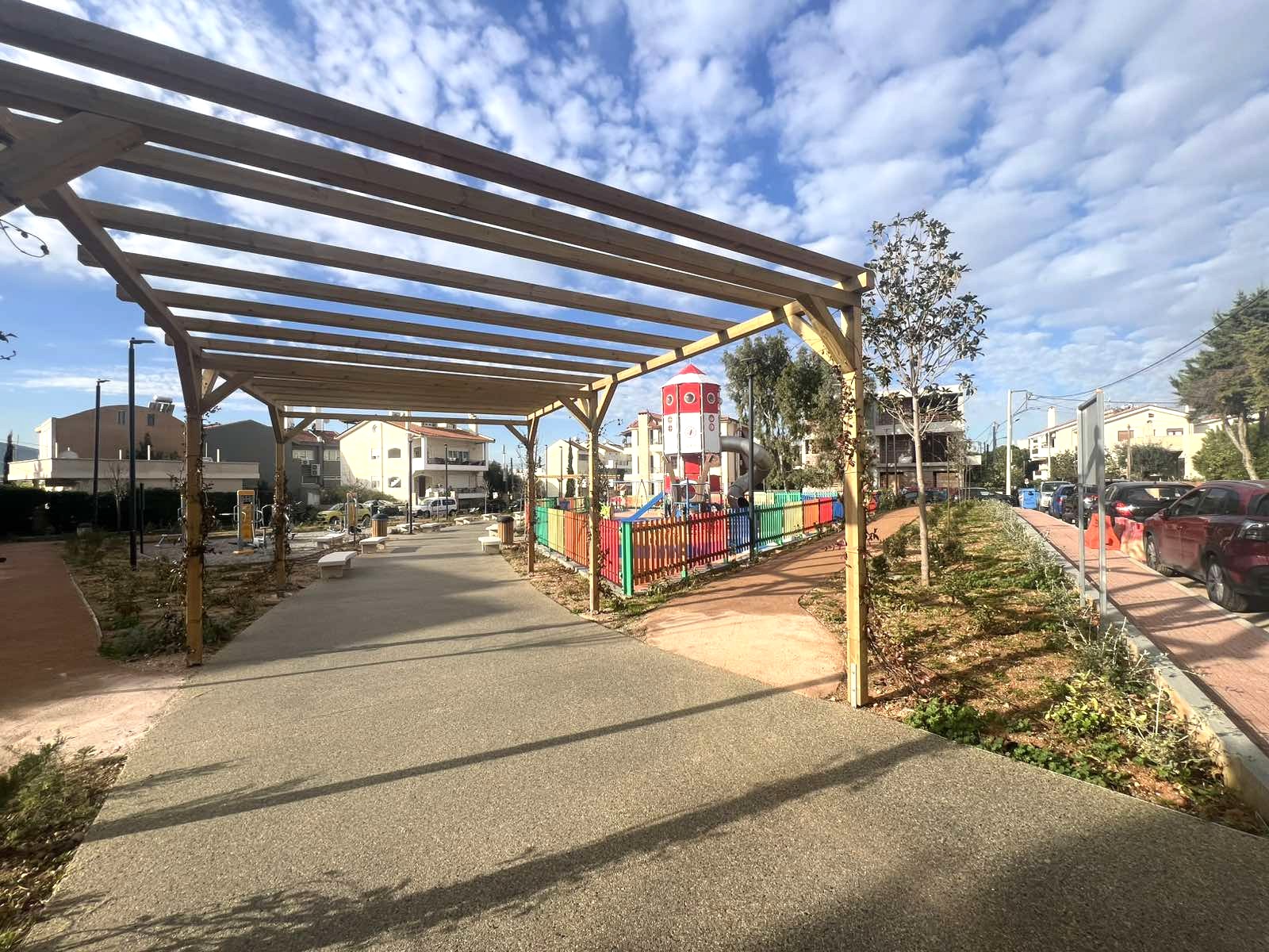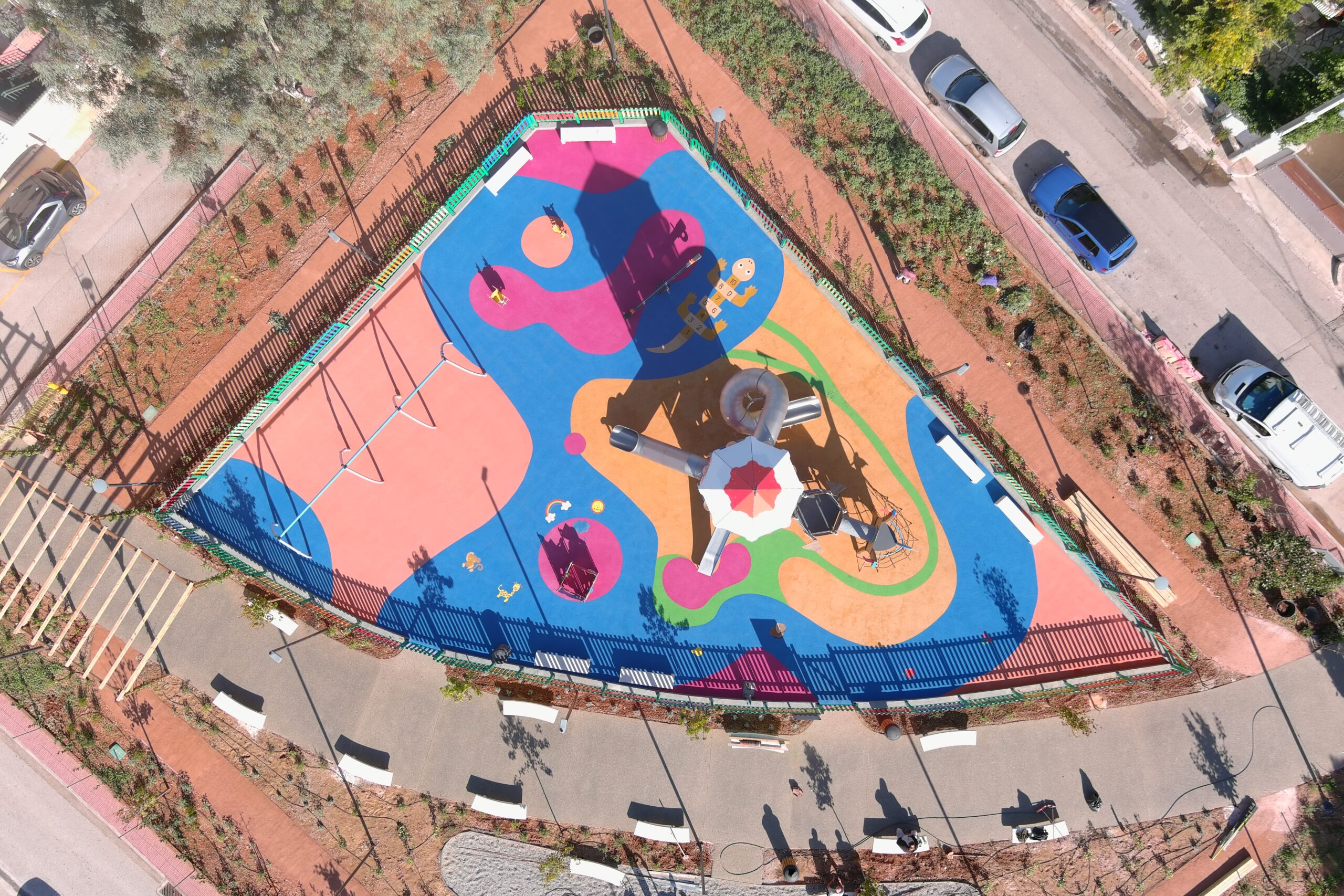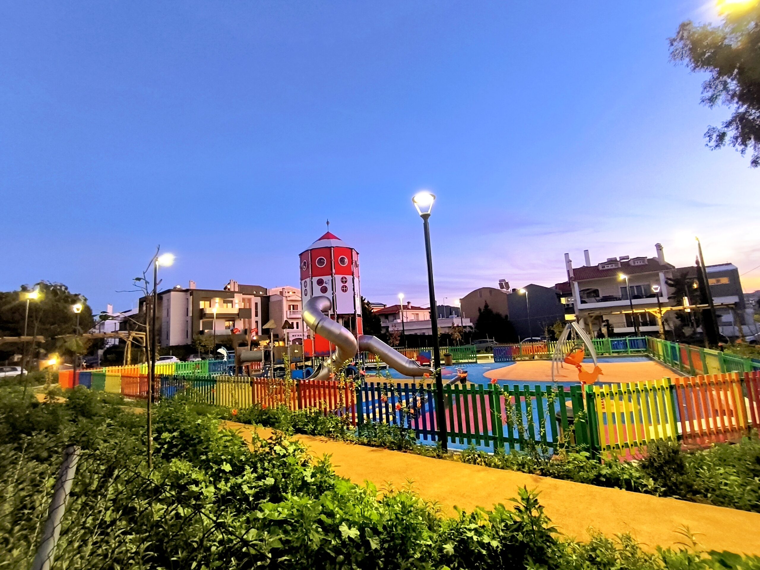 Ιδιαίτερο σημείο αναφοράς αποτελεί η νέα, πιστοποιημένη και πολύχρωμη παιδική χαρά, με πύργο παιχνιδιού, ειδικές κούνιες για παιδιά ΑμεΑ και τη μουσική τραμπάλα που προσφέρει μια διαδραστική εμπειρία παιχνιδιού. Το δάπεδο ασφαλείας διαθέτει τρισδιάστατα γραφικά, ενισχύοντας τη φαντασία και τη δημιουργικότητα των παιδιών.