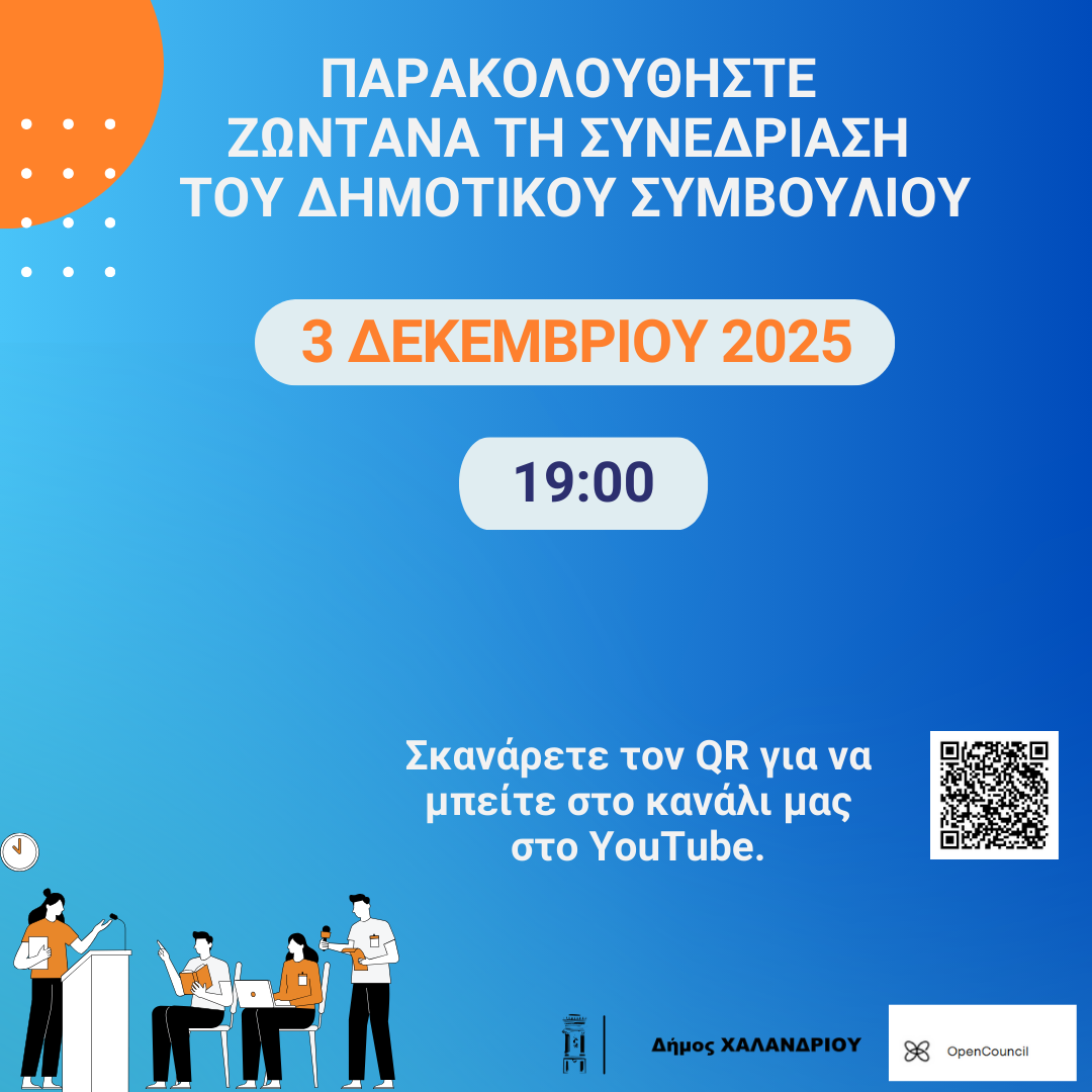 Δείτε τη σημερινή συνεδρίαση 3.11.2025, που ξεκινά στις 19.00.