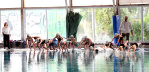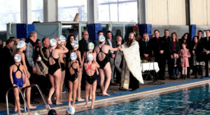 Ακολούθησε ο αγιασμός των υδάτων από τον πατέρα Βασίλειο του Ι.Ν. Αγ. Παντελεήμονα και η ρίψη του σταυρού στα νερά της πισίνας.