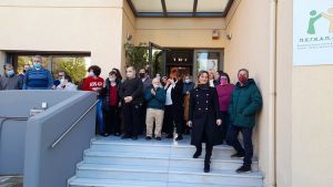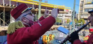 Σε όλο το εργοτάξιο, μοιράστηκαν γλυκά και ένα cd παραγωγής του Δήμου, με μικρασιάτικα τραγούδια, αφιερωμένο στα 100 χρόνια από τη Μικρασιατική Καταστροφή.