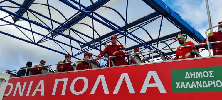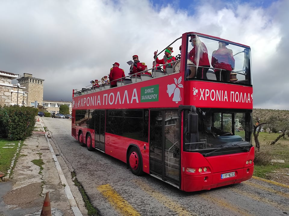 Το γιορτινό λεωφορείο του Δήμου Χαλανδρίου βρέθηκε την παραμονή της Πρωτοχρονιάς στο Ν. Παίδων Πεντέλης και στο Αναρρωτήριο Πεντέλης για να μοιράσει κάλαντα, γιορτινές μελωδίες, δώρα και παιχνίδια για τα παιδιά.