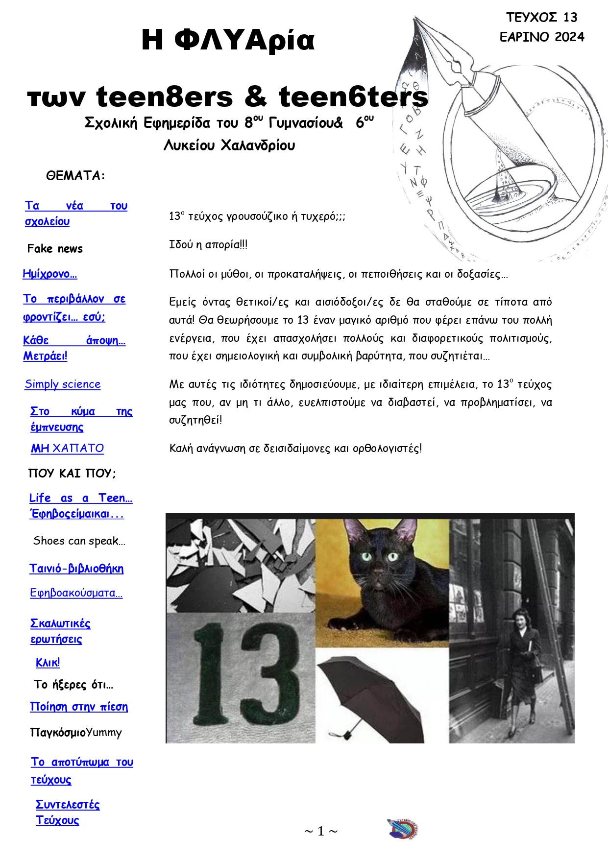 Αυτά και πολλά άλλα στο 13ο, εαρινό φύλλο της σχολικής εφημερίδας του 8ου Γυμνασίου και του 6ου Λυκείου.