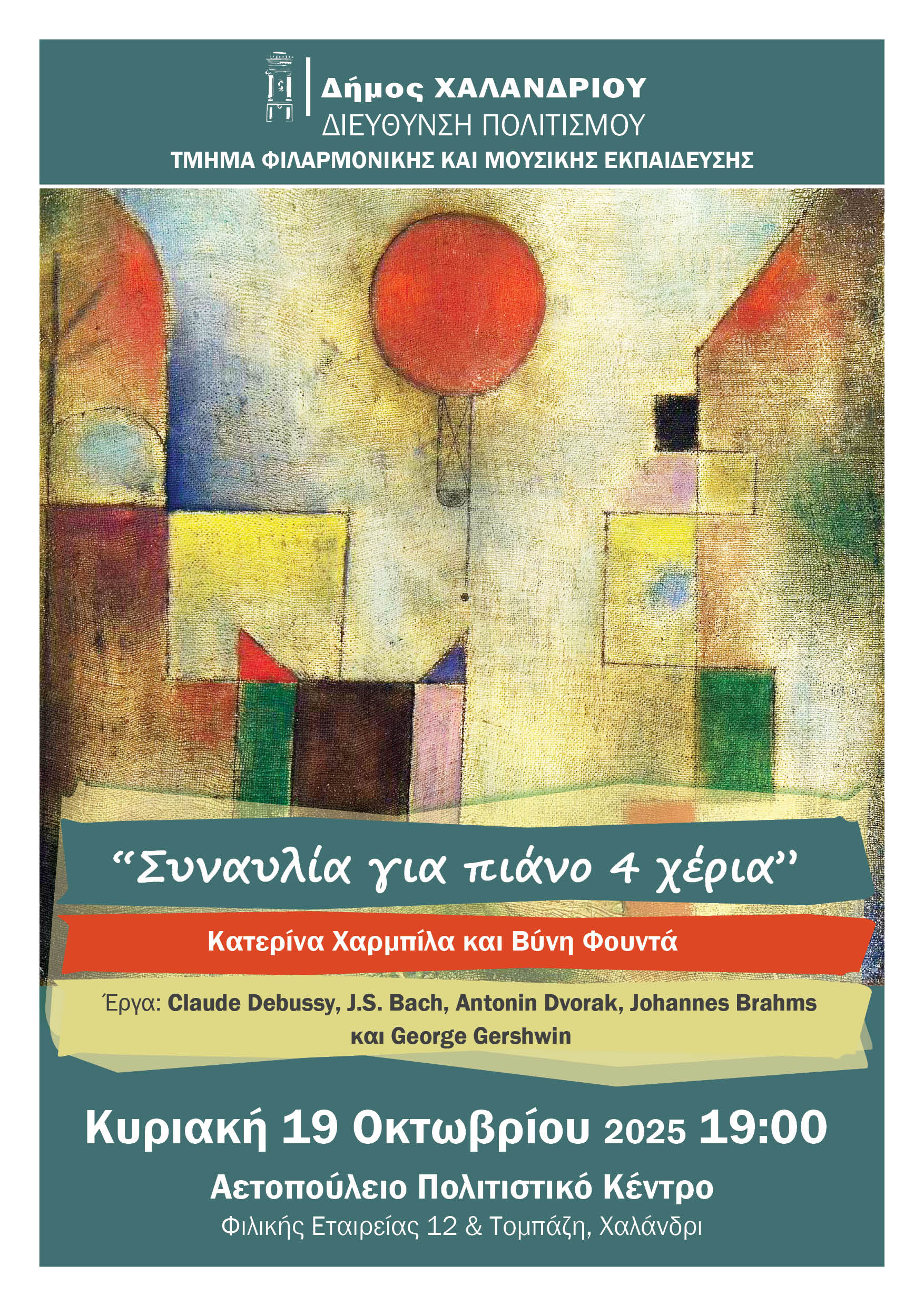 Σημ.: Στο εικαστικό της αφίσας, ο πίνακας Red Ballon του Paul Klee.