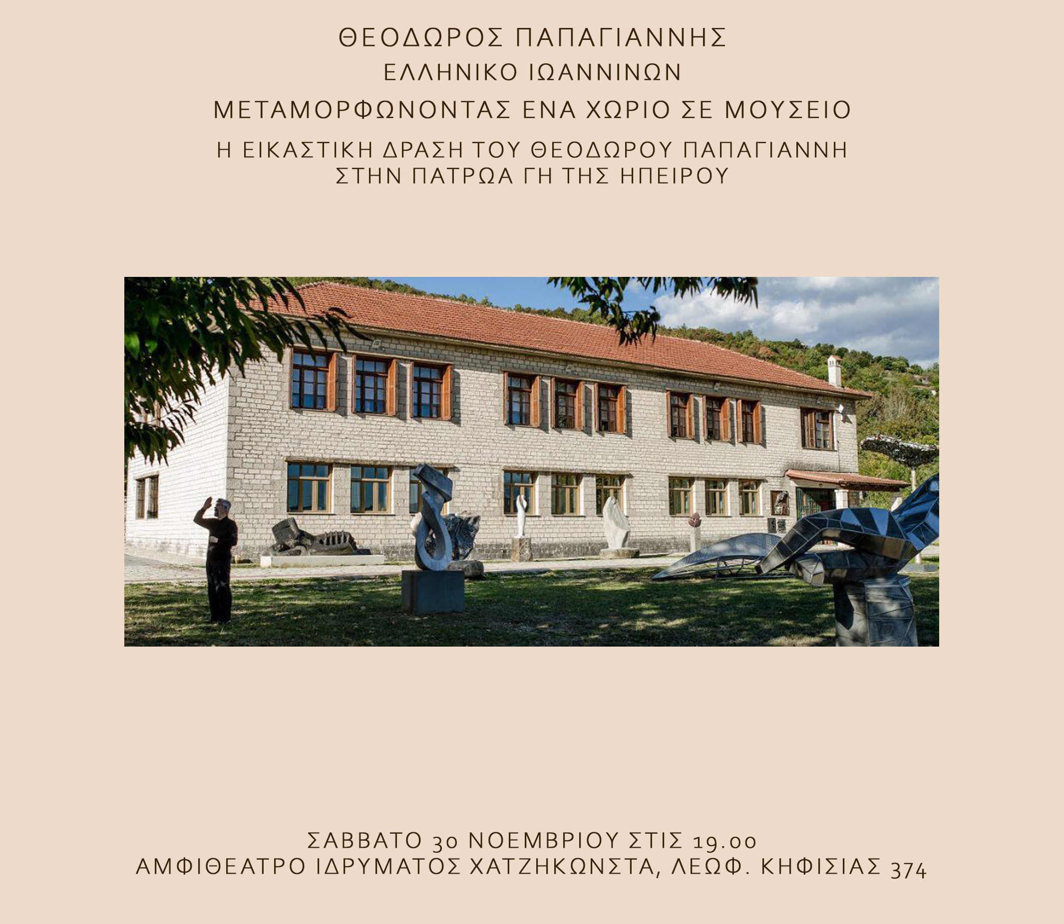 Η έννοια της μεταμόρφωσης μεταφέρεται από τη γλυπτική περιπέτεια της φόρμας του Θ. Παπαγιάννη στο όραμά του που έγκειται στην ανάδειξη του χωριού καταγωγής του, το Ελληνικό Ιωαννίνων, καθώς και της ευρύτερης περιοχής μετατρέποντάς τα σε έναν ευρύτερο μουσειακό χώρο σύγχρονης τέχνης. Η ήδη πολύχρονη δραστηριότητα του μεγάλου μας γλύπτη έχει αποδώσει ένα εξαιρετικό αποτέλεσμα που φέρει την προσωπική σφραγίδα της συνεισφοράς του, όπως επίσης και της συνεργασίας άξιων συναδέλφων του από τον εικαστικό χώρο και άλλων πολλών φίλων του εγχειρήματος.