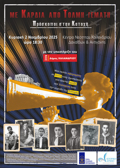 Στον απόηχο των δράσεων εορτασμού στο Χαλάνδρι της επετείου της 28ης Οκτωβρίου και του μεγάλου «ΟΧΙ» που απάντησε ο Ελληνικός λαός ενάντια στο φασισμό, στο ναζισμό και λίγο αργότερα στις κατοχικές δυνάμεις, οι Πρόσκοποι Χαλανδρίου, σε συνεργασία με το Ιστορικό Αρχείο του Σώματος Ελλήνων Προσκόπων, σας προσκαλούν στην προβολή του ντοκιμαντέρ «Με Καρδιά από Τόλμη Γεμάτη – Πρόσκοποι στην Κατοχή», την Κυριακή 2 Νοεμβρίου στις 18:30, στο Κέντρο Νεότητας Δήμου Χαλανδρίου (Αντιγόνης και Δαναΐδων).