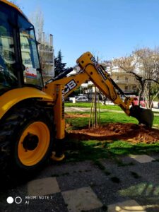 Εργαζόμενοι της υπηρεσίας Πρασίνου και της υπηρεσίας Καθαριότητας του Δήμου, με τη συνδρομή των δασκάλων και των παιδιών φύτευσαν καλλωπιστικά δέντρα στην πλατεία Κιοσέ.