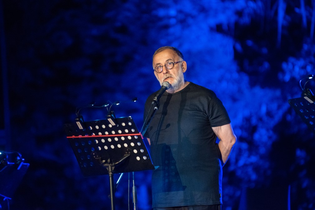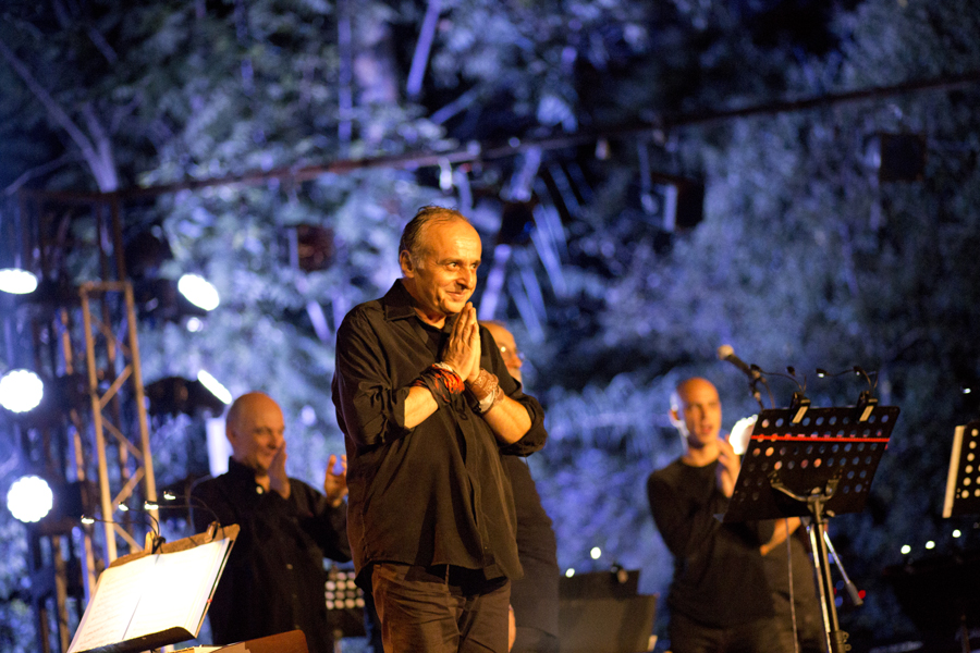 Ο συνθέτης μίλησε στο κοινό για τα έργα που παρουσιάζονταν κατά τη διάρκεια της βραδιάς και αφιέρωσε αρκετές από τις εκτελέσεις των συνθέσεών του σε αγαπημένα του πρόσωπα ενώ ιδιαίτερα συγκινητικός ήταν ο προσωπικός τόνος με τον οποίο μίλησε στο κλείσιμο της βραδιάς για να πάρει ως απάντηση από το κοινό το πιο θερμό χειροκρότημα: «Σας ευχαριστούμε για τη δύναμη που μας δίνετε να δίνουμε τον καλύτερο εαυτό μας. Κι εγώ προσωπικά σας ευχαριστώ ιδιαίτερα για τη δύναμη που μου δίνετε. Τα προβλήματά μου είναι γνωστά αλλά θα τα νικήσω».