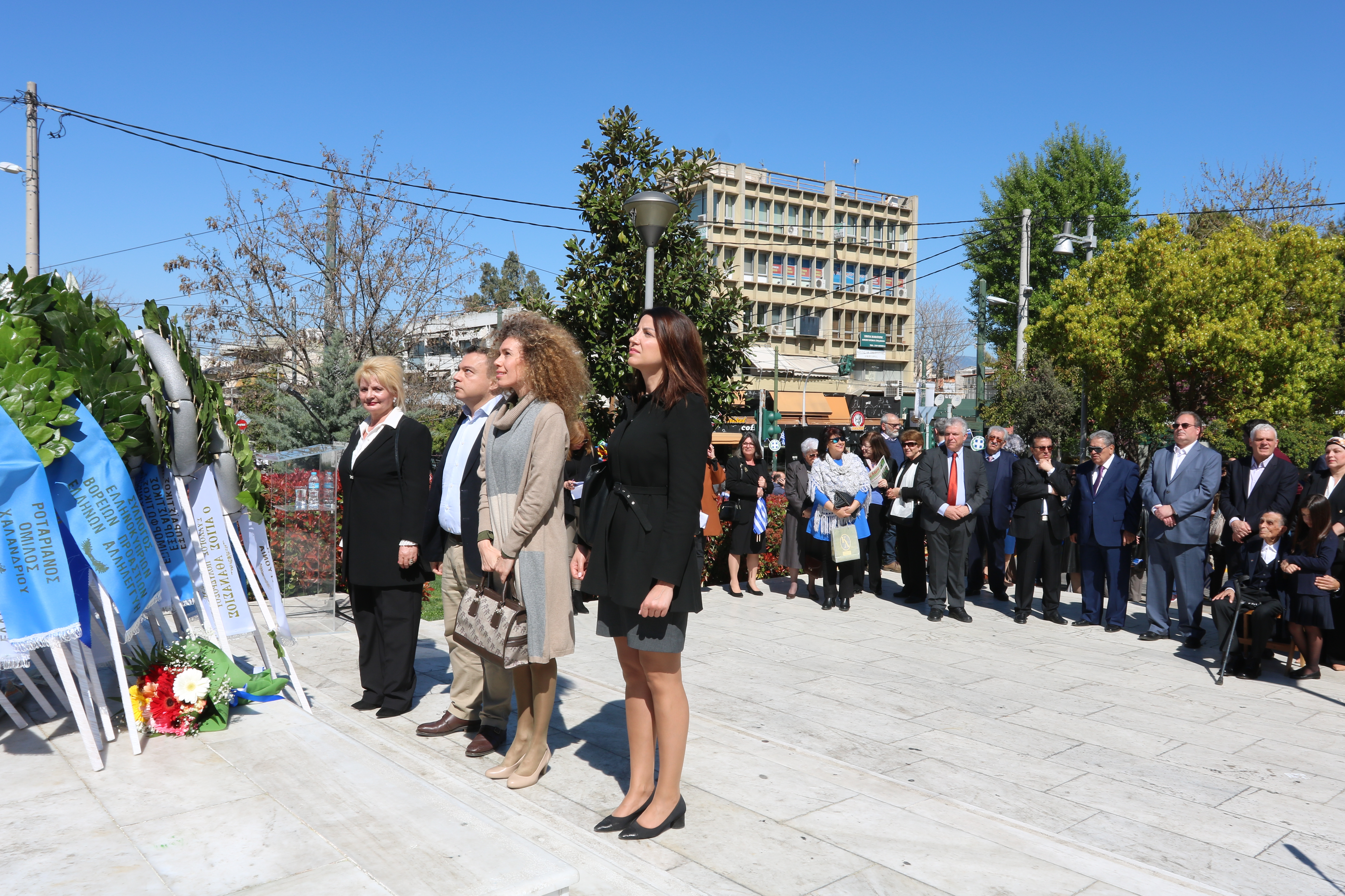 Κατάθεση στεφάνων έγινε επίσης από εκπρόσωπο της Βουλής βουλευτή του ΣΥΡΙΖΑ Γιάννη Τσιρώνη,την εκπρόσωπο της Περιφέρειας Αττικής Αντιπεριφερειάρχη Βορείου Τομέα Σοφία Κορωναίου,τον εκπρόσωπο της πρεσβείας του Παλαιστινιακού κράτους ΑhmadSuheil,τον υποδιοικητή του αστυνομικού τμήματος Χαλανδρίου Βασίλειο Τσαγιάννη,τους εκπροσώπους της Πρωτοβάθμιας & Δευτεροβάθμιας Εκπαίδευσης,εκπροσώπους φορέων, κομμάτων, σχολείων προσκόπων κ.α.
