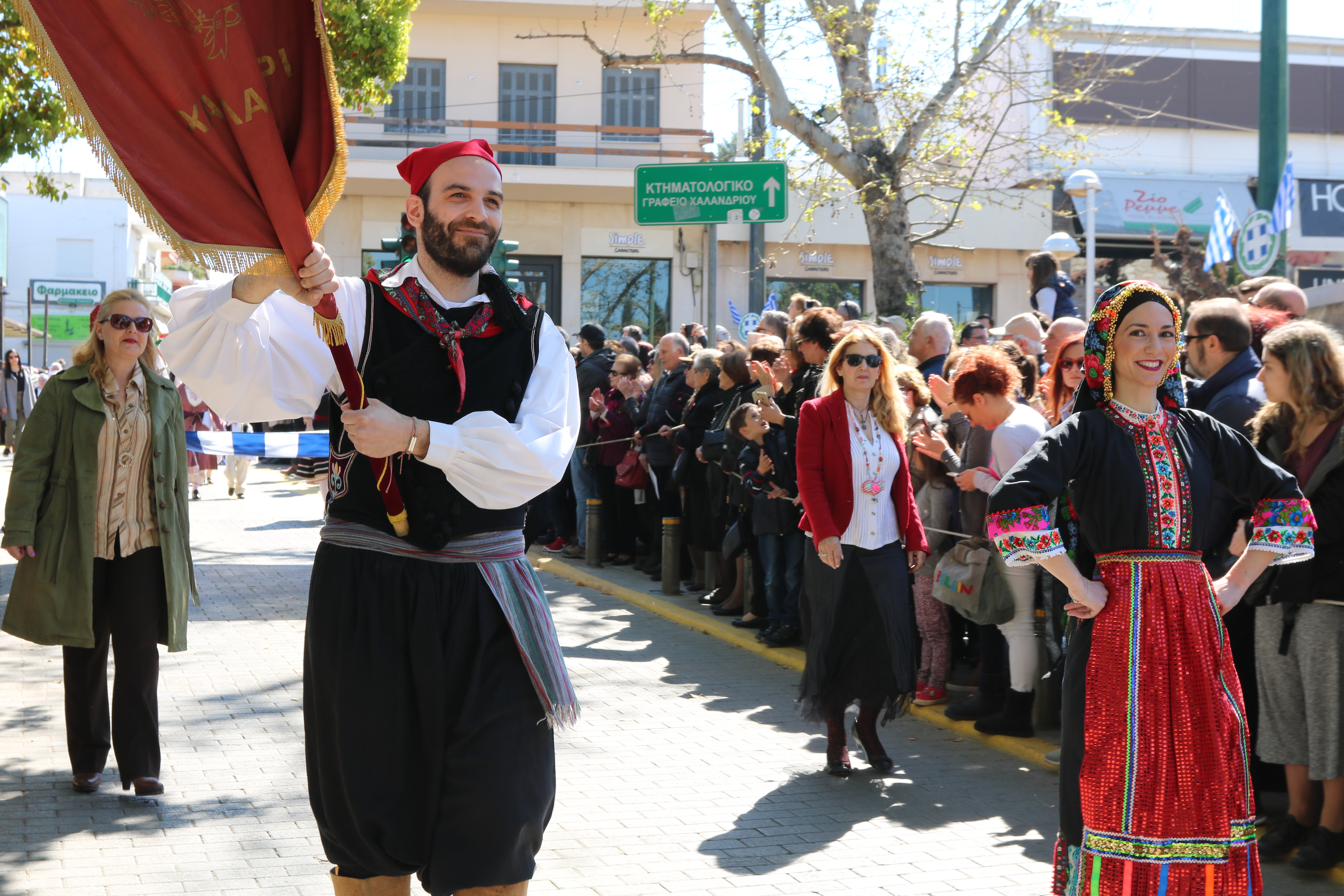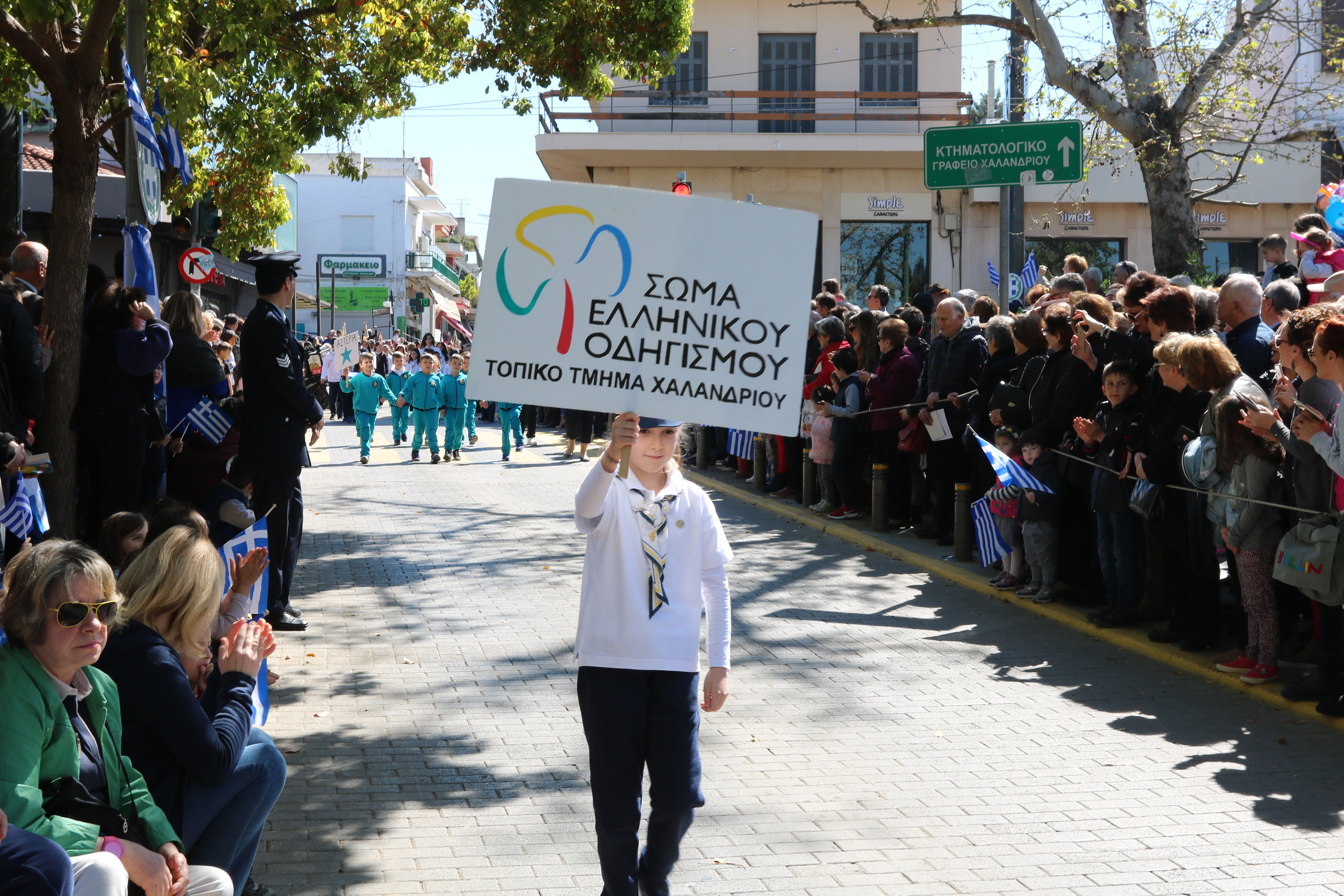 Ακολούθησε η καθιερωμένη παρέλαση την οποία άνοιξε η Φιλαρμονική του Δήμου Χαλανδρίου και κατάθεση στεφάνου στο άγαλμα του Κολοκοτρώνη. Οι εκδηλώσεις συνεχίστηκαν με παραδοσιακούς χορούς από τις χορευτικές ομάδες του κέντρου προσχολικής αγωγής Σουζάνα, του Εθνομουσολογικόυ Ίδρυματος, Πέτρου Γ. Ζήση, του Λυκείου Ελληνίδων, του Συλλόγου Ποντίων ο «Ακρίτας».