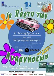 Εκτός από το μουσικό πρόγραμμα που περιλαμβάνει τραγούδια της εποχής, το Σάββατο, το κλίμα περασμένων δεκαετιών θα μεταφέρουν τα κλασικά αυτοκίνητα και μοτοσυκλέτες που θα βρίσκονται στη Ρεματιά, τα οποία θα κάνουν βόλτα από το μεσημέρι στο εμπορικό κέντρο της πόλης και στη συνέχεια θα παραμείνουν μέχρι το βράδυ στον πεζόδρομο της κεντρικής πλατείας «καλώντας» όλους και όλες στο πάρτυ της Ρεματιάς. Οι πόρτες του θεάτρου θα ανοίξουν από τις 7 μ.μ. ώστε να δοθεί η δυνατότητα στο κοινό να επισκεφθεί την έκθεση των κλασικών αυτοκινήτων και μοτοσυκλετών και μια ώρα αργότερα το πρόγραμμα της βραδιάς ξεκινά με βιντεοπροβολές ενώ στις 8.30 το πάρτυ ανοίγουν οι New Oldies με ελληνικά τραγούδια από τα ‘60s και ‘70s.