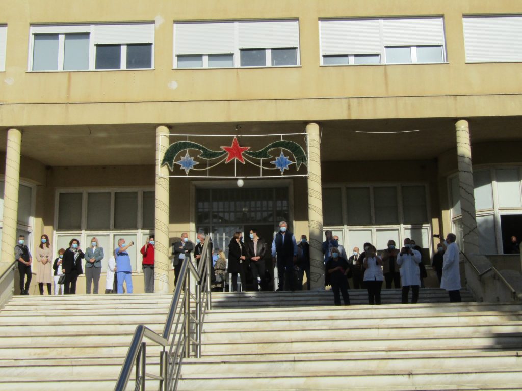 Το δήμαρχο Χαλανδρίου και το μουσικό λεωφορείο του Δήμου υποδέχτηκε ο διοικητής του Νοσοκομείου, κ. Ηλίας Δαλαΐνας, γιατροί, νοσηλευτές και εκπρόσωποι των εργαζομένων.