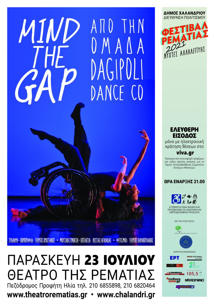 Την προσβάσιμη στο περιεχόμενο παράσταση σύγχρονου χορού Mind the gap από την ομάδα Dagipoli Dance Co, παρουσιάζει το Φεστιβάλ Ρεματιάς 2021 – Νύχτες Αλληλεγγύης, την Παρασκευή 23 Ιουλίου.