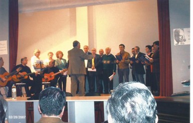 …Την ίδια εποχή ιδρύεται από τον Ε. ΠΕΤΡΙΔΗ μικτή χορωδία, η οποία τα επόμενα χρόνια έφθασε σε μεγάλη ακμή. Ο Ε. Πετρίδης, ήδη από το 1948, έχει ιδρύσει παιδική χορωδία με σκοπό να συνοδεύει την κυριακάτικη λειτουργία του Αγίου Νικολάου. Τα αγόρια που διαλέγει, έχουν την τύχη να μυηθούν στην πανδαισία της μουσικής.