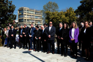 Μετά τη δοξολογία στον ιερό ναό του Αγίου Νικολάου ακολούθησε επιμνημόσυνη δέηση στο Μνημείο των Πεσόντων και κατάθεση στεφάνων από το δήμαρχο Χαλανδρίου Σίμο Ρούσσο, τον πρόεδρο του Δημοτικού Συμβουλίου Ιωάννη Λαδόπουλο, τον βουλευτή Β. Τομέα του ΣΥΡΙΖΑ κ. Γιώργο Κατρούγκαλο –ο οποίος εκπροσώπησε τη Βουλή των Ελλήνων- τον αντιπεριφερειάρχη Πολιτισμού και Αθλητισμού κ. Χάρη Ρώμα, την κ. Fadwa Abushanab, που εκπροσώπησε την πρεσβεία της Παλαιστίνης, την επικεφαλής της δημοτικής παράταξη «Αγαπάμε το Χαλάνδρι» κ. Κρίστη Αγαπητού, τον επικεφαλής της δημοτικής παράταξης «Χαλάνδρι Ορίζοντας 2023» κ. Μάνο Κρανίδη, τον επικεφαλής της δημοτικής παράταξης «Μένω στο Χαλάνδρι» κ. Νίκο Πράσσο, τον διοικητή του Α.Τ. Χαλανδρίου Ιωάννη Κραβαρίτη, τους εκπροσώπους της εκπαιδευτικής κοινότητας, τους εκπροσώπους των κομμάτων, των συλλόγων και των φορέων της πόλης.